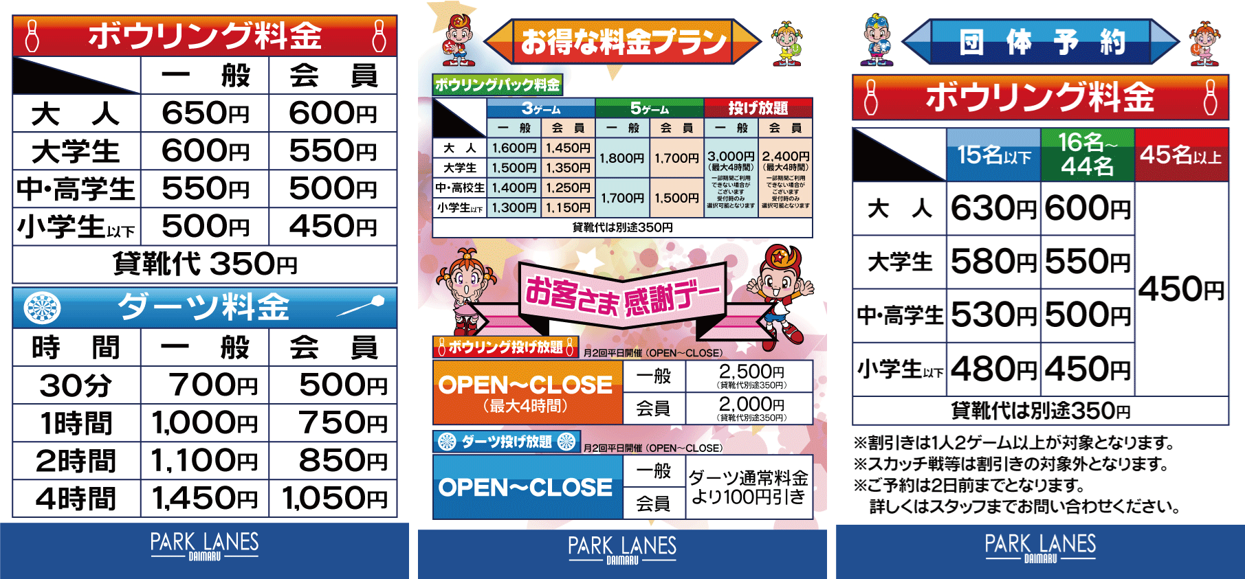 ※割引きは1人2ゲーム以上が対象となります。